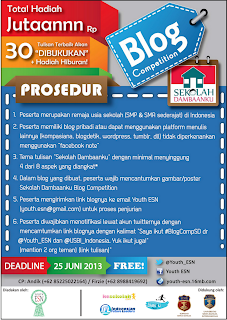 Alasan saya membuat artikel ini yaitu artikel yang saya buat untuk mengikuti kompetisi Blogger untuk umur SMP dan SMA. Artikel ini juga artikel pertama yang mengangkat tema tentang sekolah saya sendiri. Okeh setelah baca artikel ini semoga kalian yang baru lulus SD jangan bingung lagi deh buat milih SMP, dan doain ya Artikel ini bisa jadi Pemenangnya.
